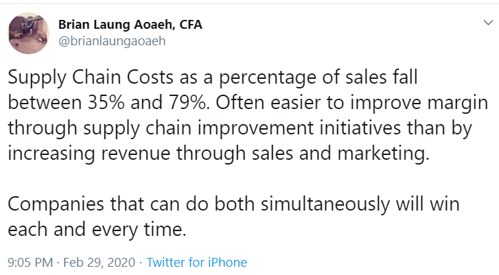 Supply chain optimization is (or should be) a strategic priority for the executive suite. To quote Brian Laung Aoaeh further, “… supply chain is where companies win or lose competitive advantage.”