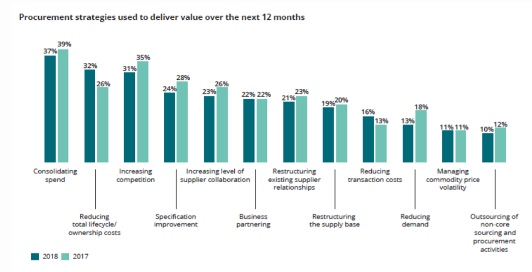 As Ayming put it in a report on the future of procurement, “Procurement must continue to prove its worth beyond just delivering savings.” COOs and CPOs understand the strategic value of procurement, but there is still work to get CEOs and CFOs to see the light. Priorities highlighted for procurement reform include earlier involvement to create value in decision making and ongoing evolution to parallel the evolution of the firm.